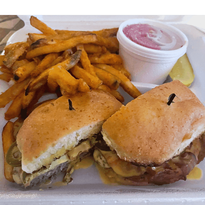 The standout dishes at Soda Pops are nothing short of delicious. If you’re craving something sweet, the Turtle Brownie is a must-try. This decadent dessert combines rich chocolate with nuts and caramel, making it the perfect way to end your meal. For something savory, the Chili Fries with Cheese are a fan favorite, topped with hearty chili and melted cheese for a satisfying and indulgent snack or side dish. If you're dining with kids, the Kids Bacon Cheeseburger is sure to be a hit. Served with all the classic toppings, it’s the perfect portion size for little appetites.